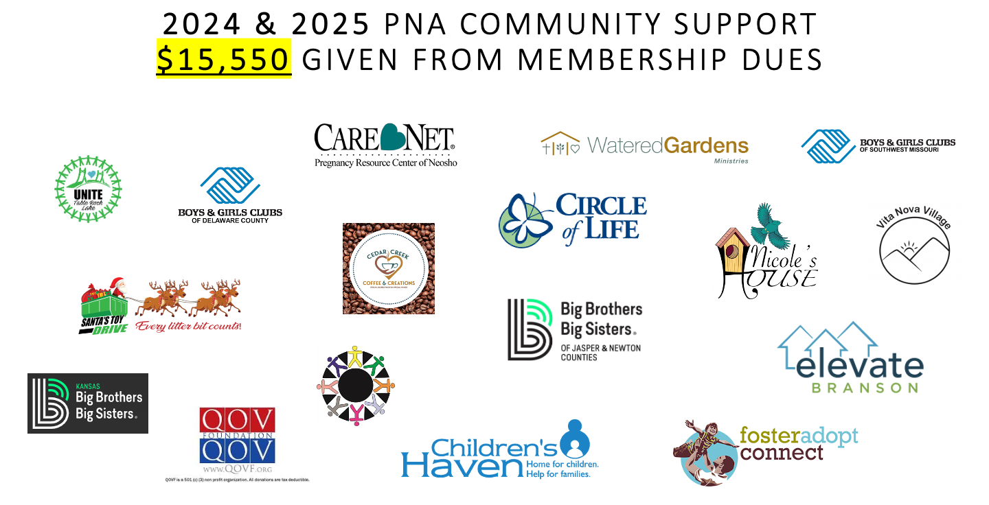 Each chapter is to run industry exclusive, only one industry classification per person per chapter. Meetings are held weekly with meeting times and location set by chapter members. PNA chapters are limited to be located within one hour thirty minutes of either Joplin, MO or Springfield, MO.